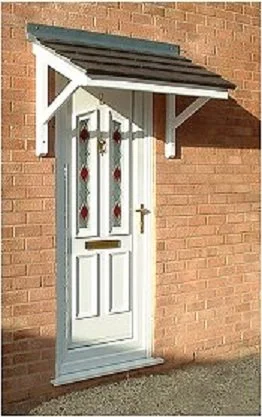 The Clevedon is a mono pitch over-door canopy that has a woodgrain-effect base and a tile effect lid. this canopy can made in varying lengths.